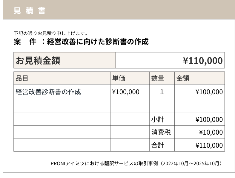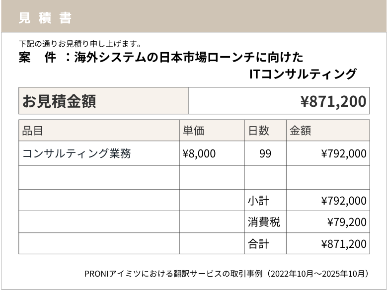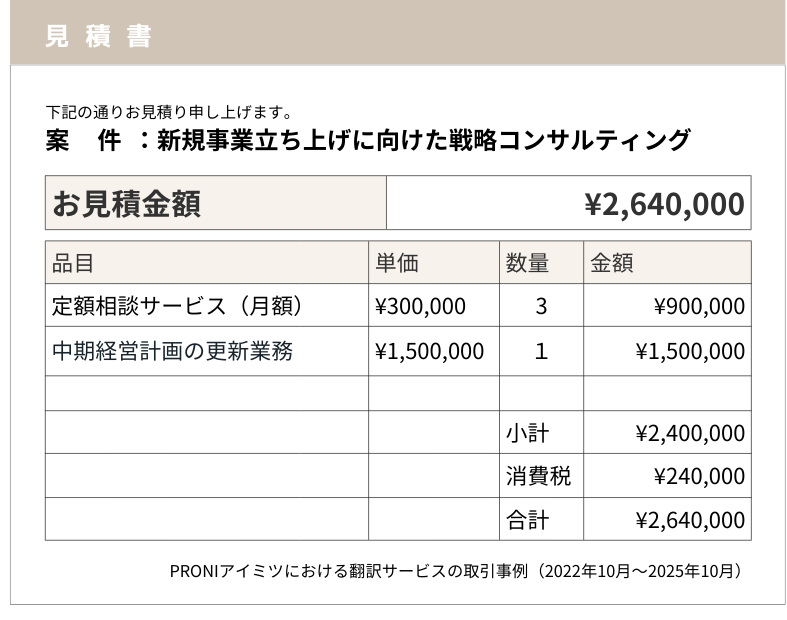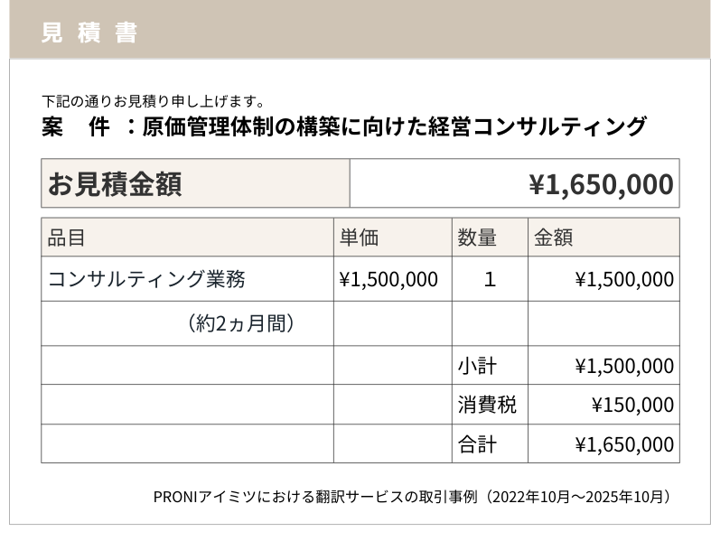 ※本見積書は、当社PRONIアイミツの取引事例をもとに見積書を再現したものです。