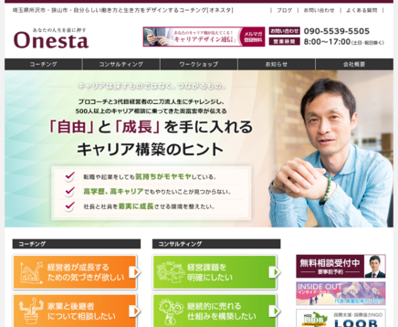 オネスタコンサルティングは埼玉県狭山市のコンサルティング会社。中小企業や地域団体へのコンサルティングを主に実施しています。イタリア語で「誠実」を意味する「オネスタ(Onesta)」により、お客様の成功に真摯に、誠実に向かいます。マーケティングとコーチングで企業経営を支援。企業が成長するためのしくみと人材づくりを強力に支援します。コーチングを強化することによりコミュニケーション力を強化し、コンサルティングの強化に繋げます。中小企業コンサルティングと経営者・後継者コンサルティングを通じて企業経営をバックアップ。社会の中で生きる私たちの価値を見出すことで「自分の人生」を形成し、「私」と「社会、組織」の関連性を作ることで価値を創出します。