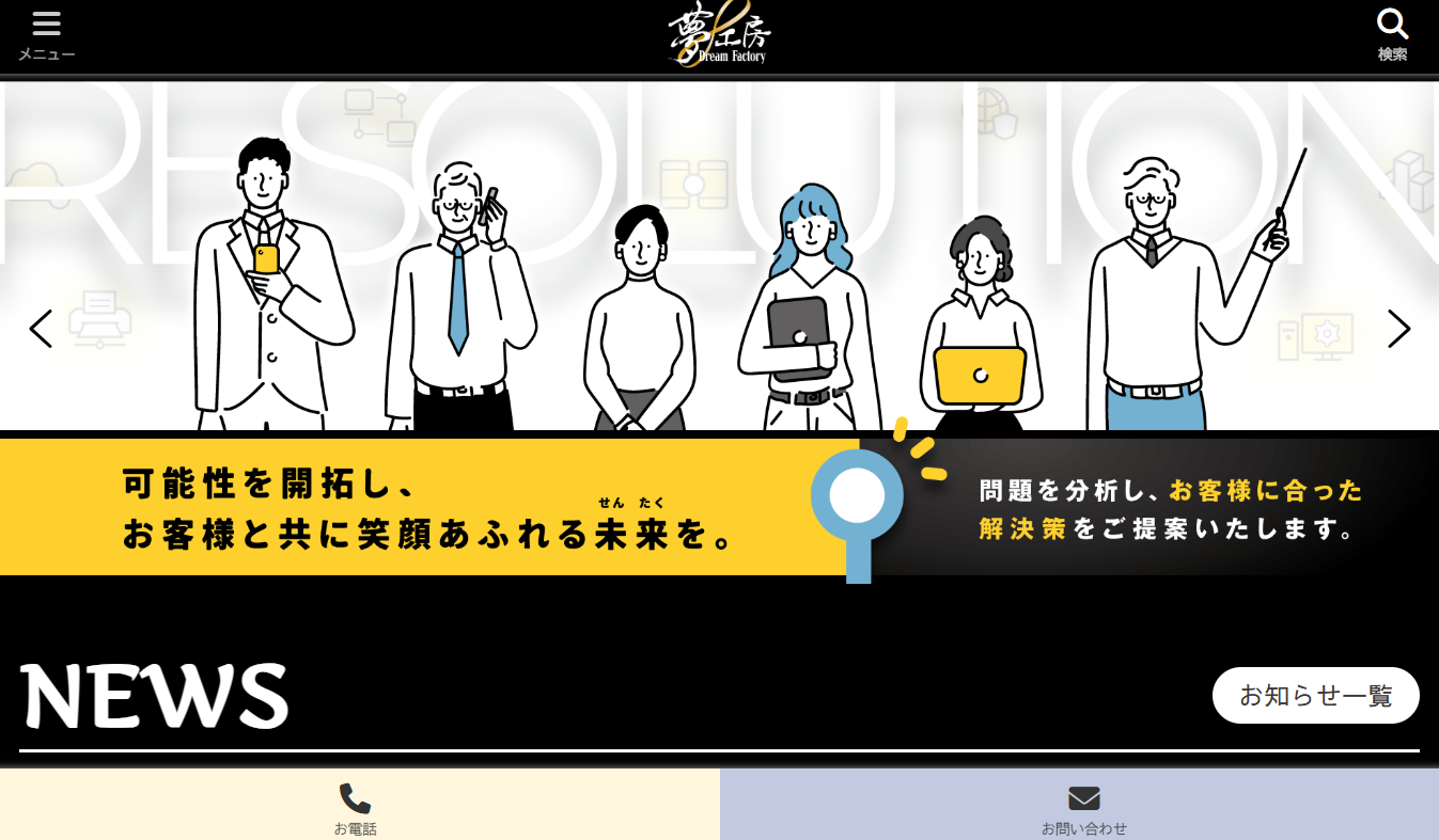 株式会社夢工房は、ホームページ制作やシステム開発、webコンサルティングなどを行う宮城県の会社です。