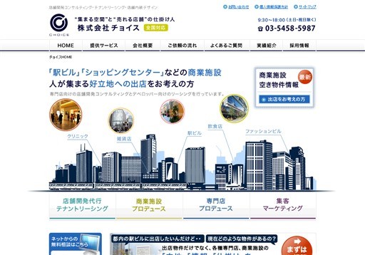 株式会社チョイスは、商業施設や専門店、小売店などの流通小売業に特化した「トータルソリューション事業」を展開しています。当社の強みは、軽いフットワークと、強力なネットワークによるトータルサービス。消費者ニーズを知り尽くした旬な情報を商業施設や専門店、小売店にいち早くフィードバックするとともに、消費者にとって価値ある商空間を総合プロデュースいたします。