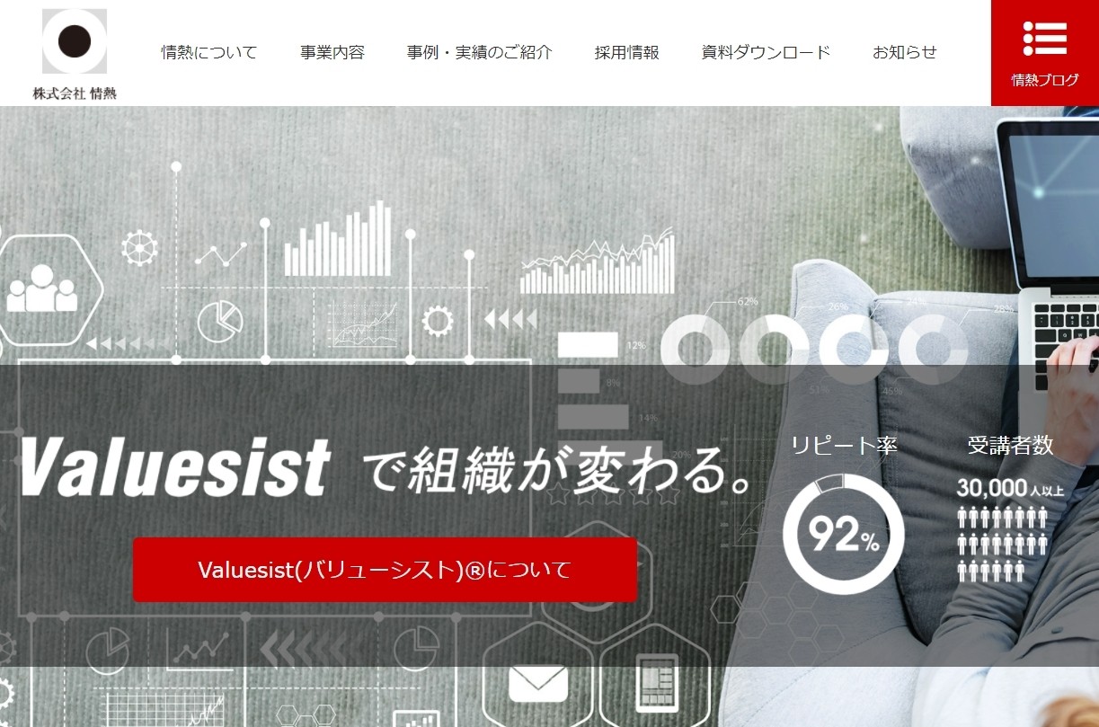 情熱は東京都渋谷区に本社を置くコンサルタント会社で、社員研修事業を手がけています。新入社員、若手社員から管理職まで、研修の目的に合わせて300以上のカリキュラムと50人を超える豊富な講師陣の中から最適なカリキュラムと講師を選び、完全オーダーメイドで人材育成を支援しています。