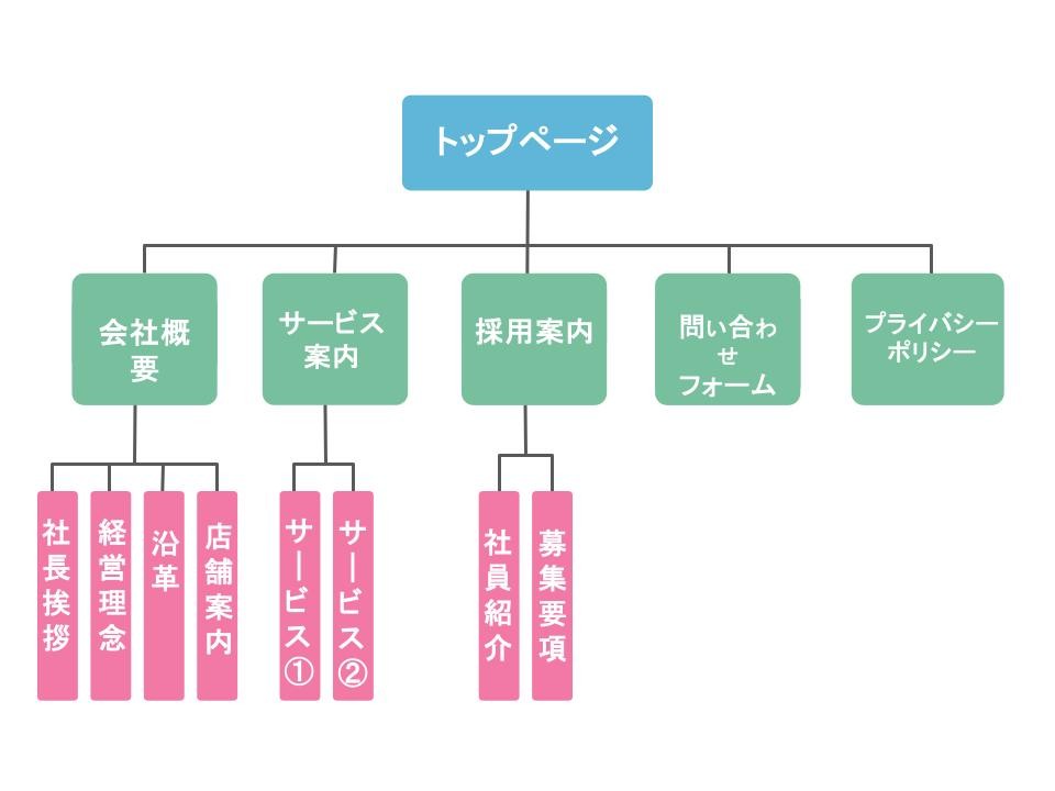 分類したカテゴリをもとに、ページ同士の上下関係を整理して階層を決定します。トップページを起点に主要カテゴリを配置し、その下に詳細ページを組み込み、全体像を整理していきましょう。
